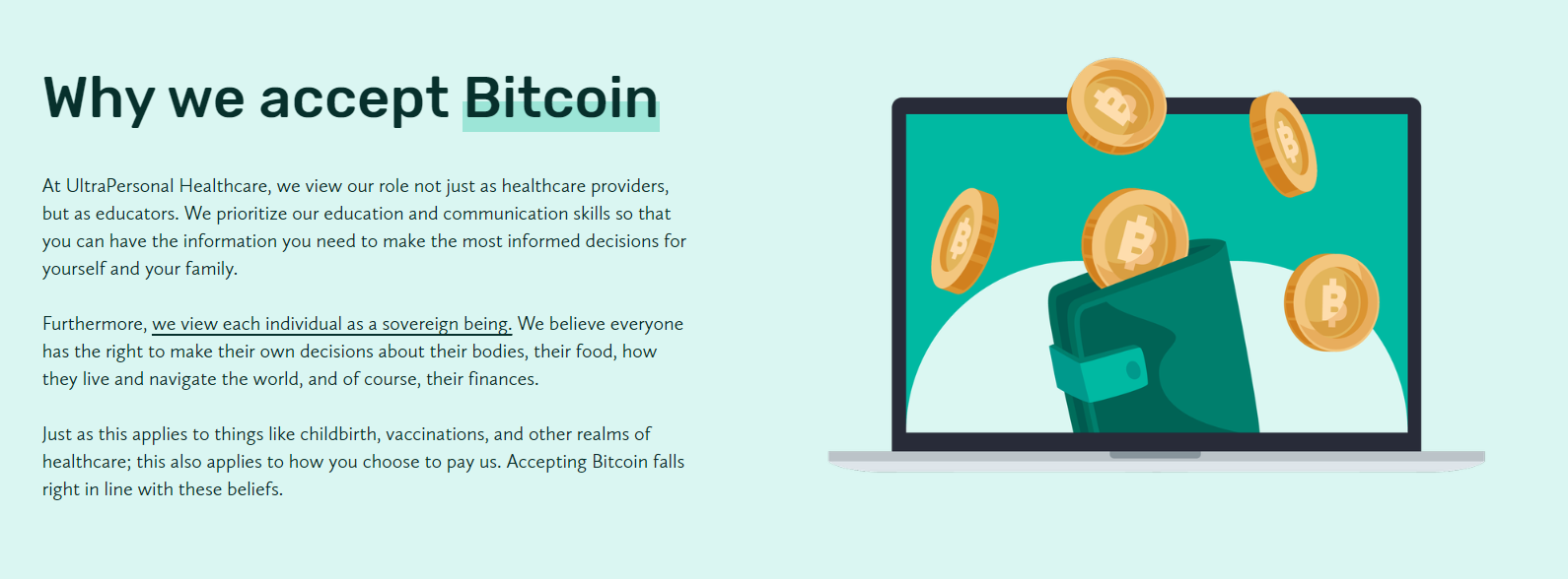Another advantage to going with direct primary care is their intimate patient panel sizes: panel sizes range from 200-600, roughly 85% smaller than a traditional PCP’s panel size (~3000), providing members quicker access and longer visits. DPC also pairs well with being a member of CrowdHealth, where we are delightfully uninsured and get $300 a year in crowdfunding to use for preventative services, such as DPC memberships. We have the freedom to choose where to receive care, and when choosing a provider bitcoiners businesses that accept bitcoin, because it means that business owner has shown "proof of work" in their own education. In the case of healthcare, it also means that provider takes a first principles approach to understanding root causes of an ailment.