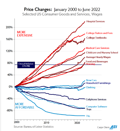 It is no coincidence that we have seen such massive price increases in the healthcare industry, at over 200% over the past two decades. Part of the problem is the overregulation of the industry, policies and healthcare systems which I studied deeply throughout my double master's in health economics and policy program at the University of Chicago and London School of Economics. All of the technological advances in the industry have been overwhelmed by the administrative and legislative burden of the US system.